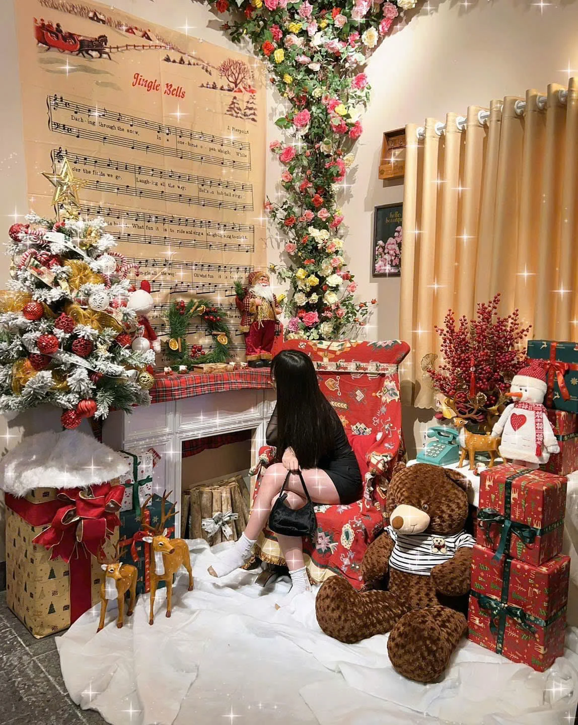 7. Trang Trí Noel Quán Cafe Với Sao Vàng và Chuông Bạc