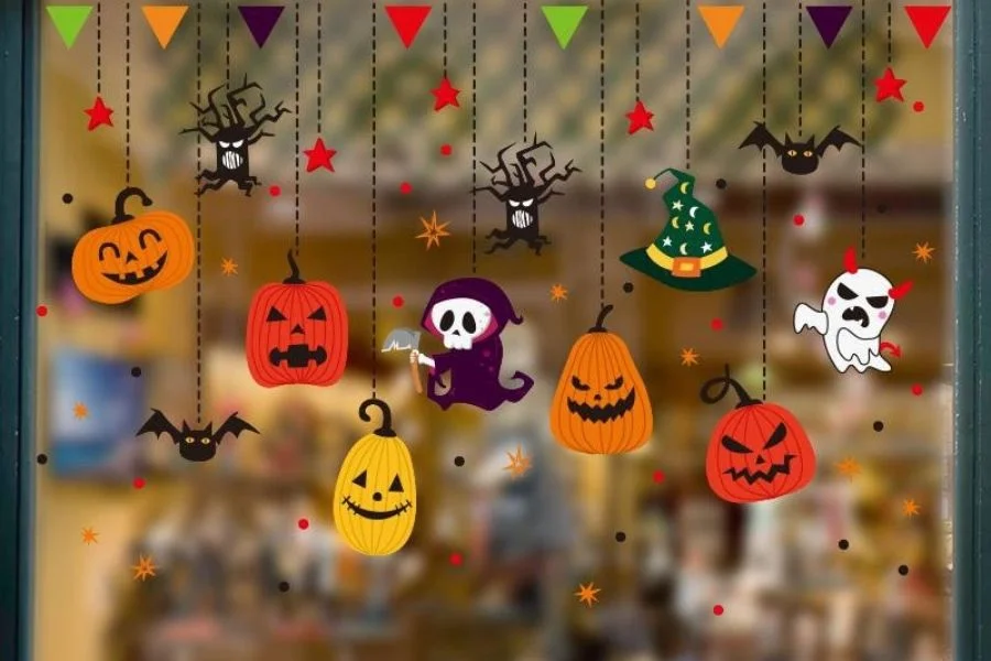 Trang trí cửa sổ bằng những miếng dán hoặc hình ảnh ma quái sẽ là cách tạo nên hiệu ứng Halloween từ bên ngoài. Khách hàng khi vừa bước đến đã có thể cảm nhận được bầu không khí lễ hội ngay lập tức.
