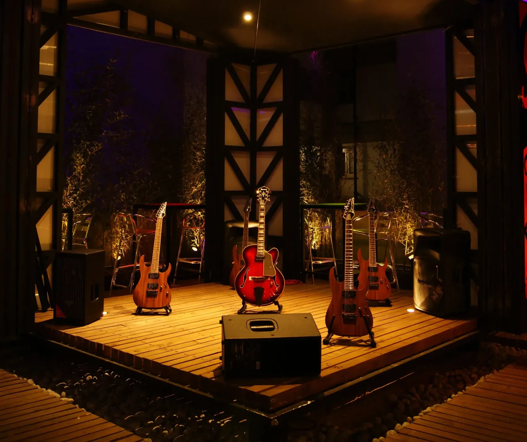 Là khu vực để chơi nhạc sống hoặc các sự kiện nghệ thuật khác. Sân khấu không chỉ là nơi để biểu diễn mà còn là trung tâm thu hút khách hàng và tạo ra một không gian giao lưu, giải trí độc đáo. Khi thiết kế sân khấu, sự linh hoạt và đa dạng là chìa khóa. Cần có nhiều tùy chọn về kích thước và cấu trúc của sân khấu để phù hợp với nhu cầu của mọi loại biểu diễn, từ các nhóm nhạc nhỏ đến các chương trình lớn.