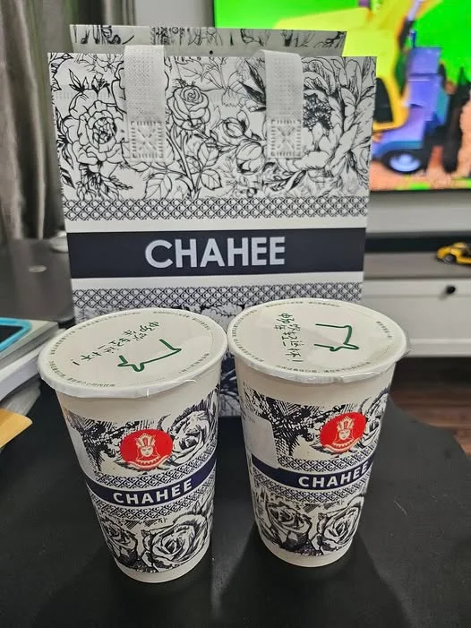 Chahee lại chọn phong cách thiết kế này đang gây tranh cãi khi bị cho là “học hỏi” từ Chagee. Từ cách bố trí chữ đến bảng màu. Dù đơn giản và dễ nhìn, sự tương đồng này khiến thương hiệu khó tạo dấu ấn riêng.