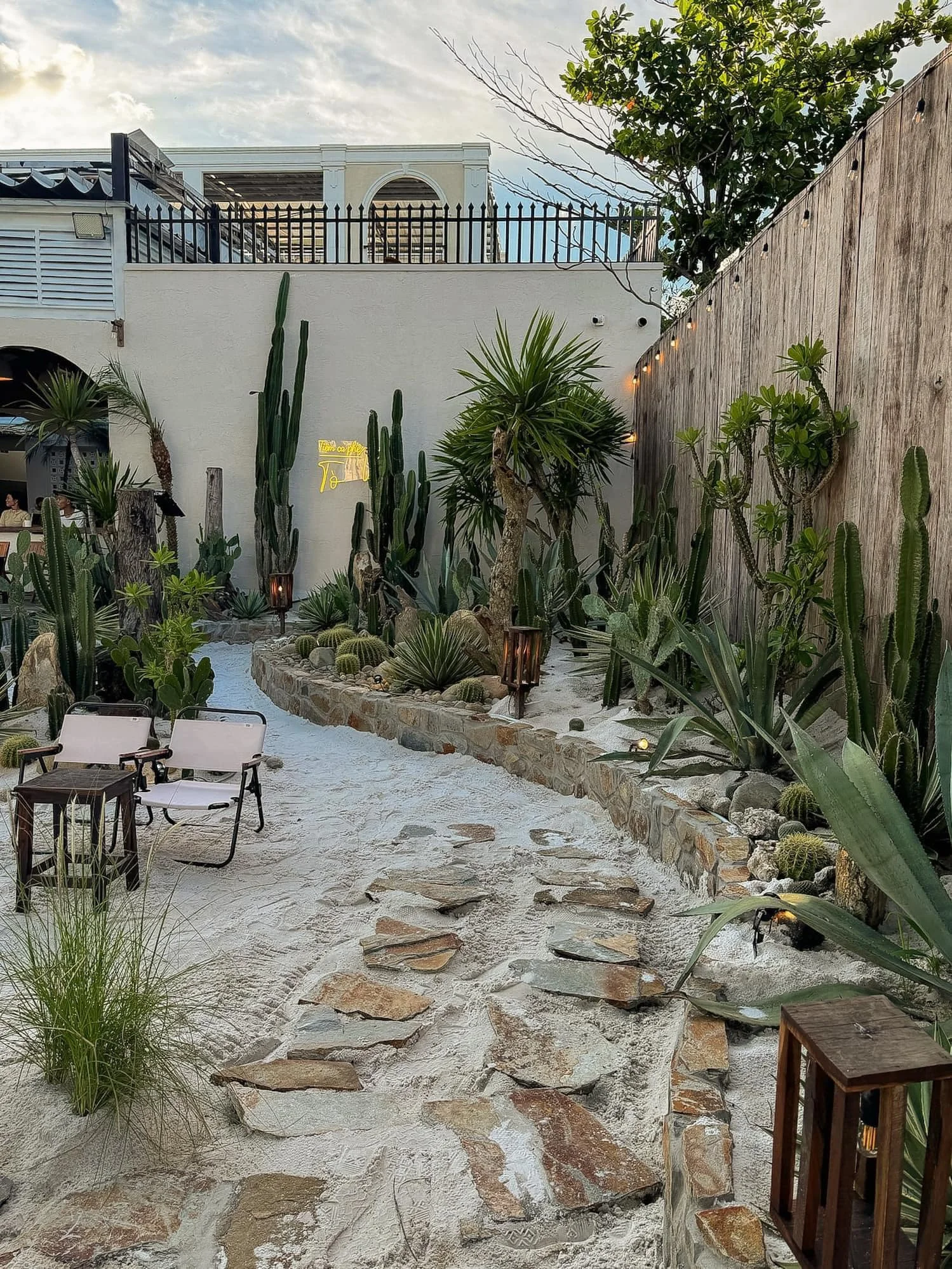 Hòa mình vào không khí lãng mạn với ánh sáng ấm cúng và cảnh quan sân vườn tuyệt đẹp