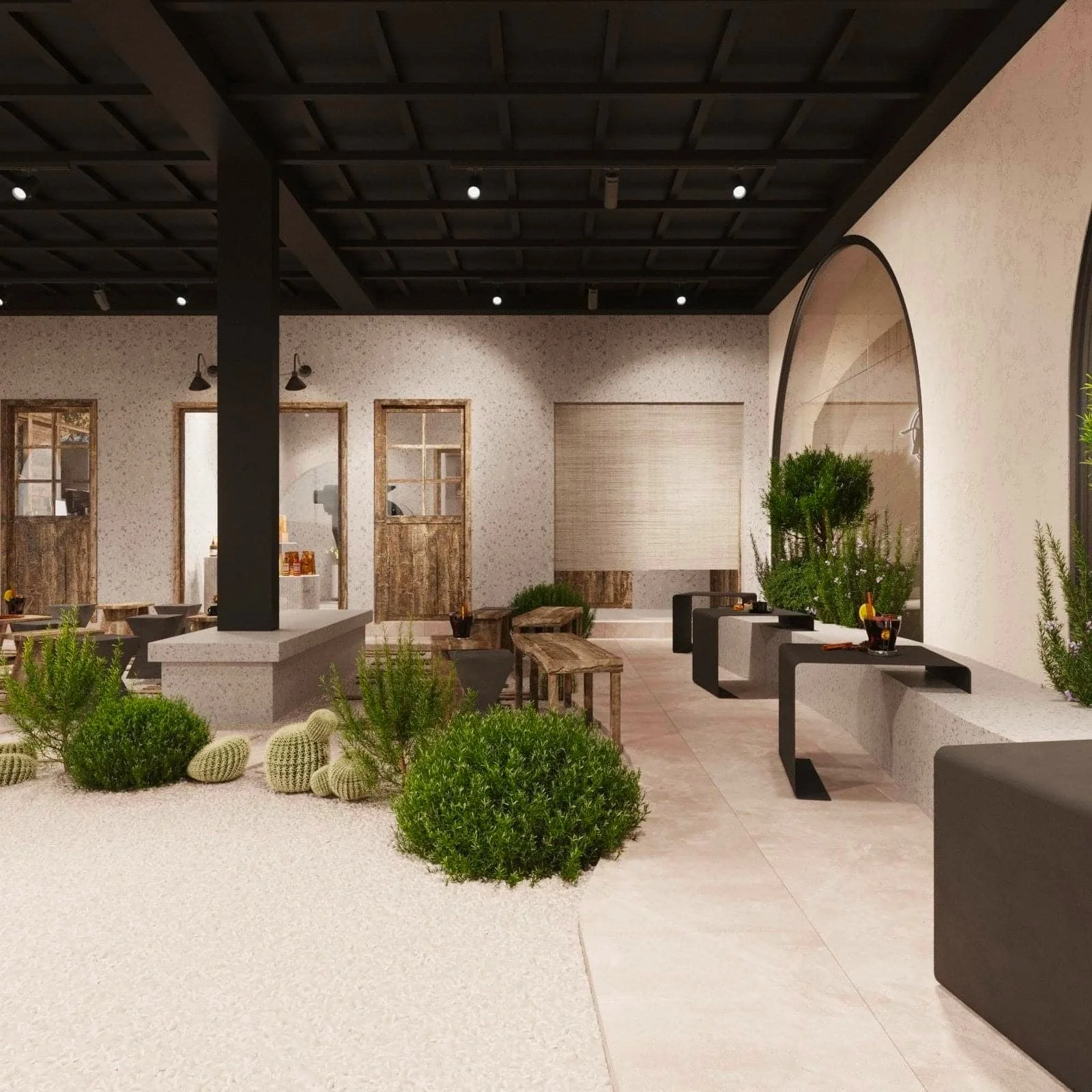 Xu hướng thiết kế quán cà phê đơn giản hiện nay cũng đang dần chuyển mình về việc tích hợp không gian xanh vào trong quán. Cây cối không chỉ làm đẹp cho không gian mà còn giúp cải thiện chất lượng không khí.